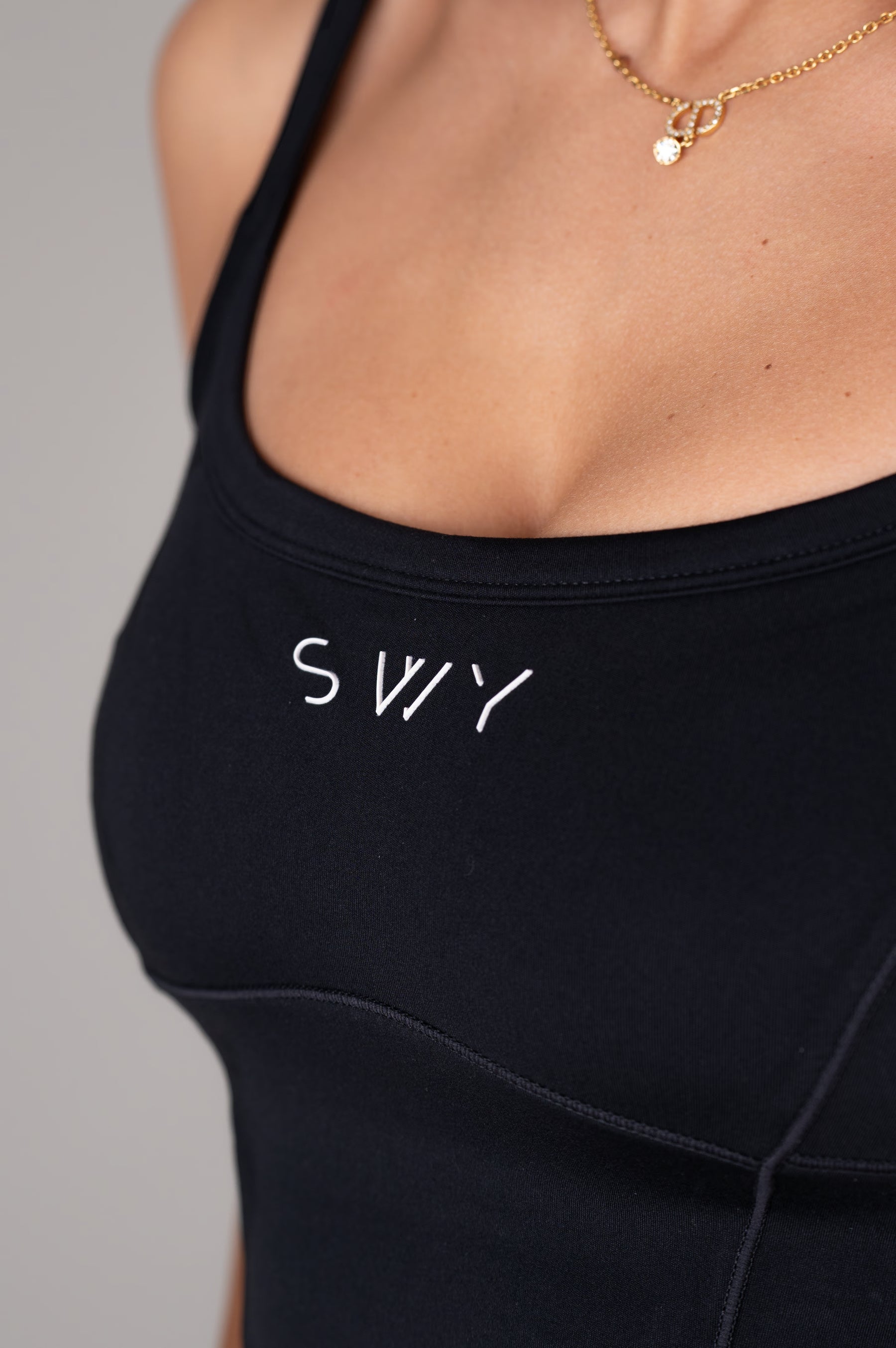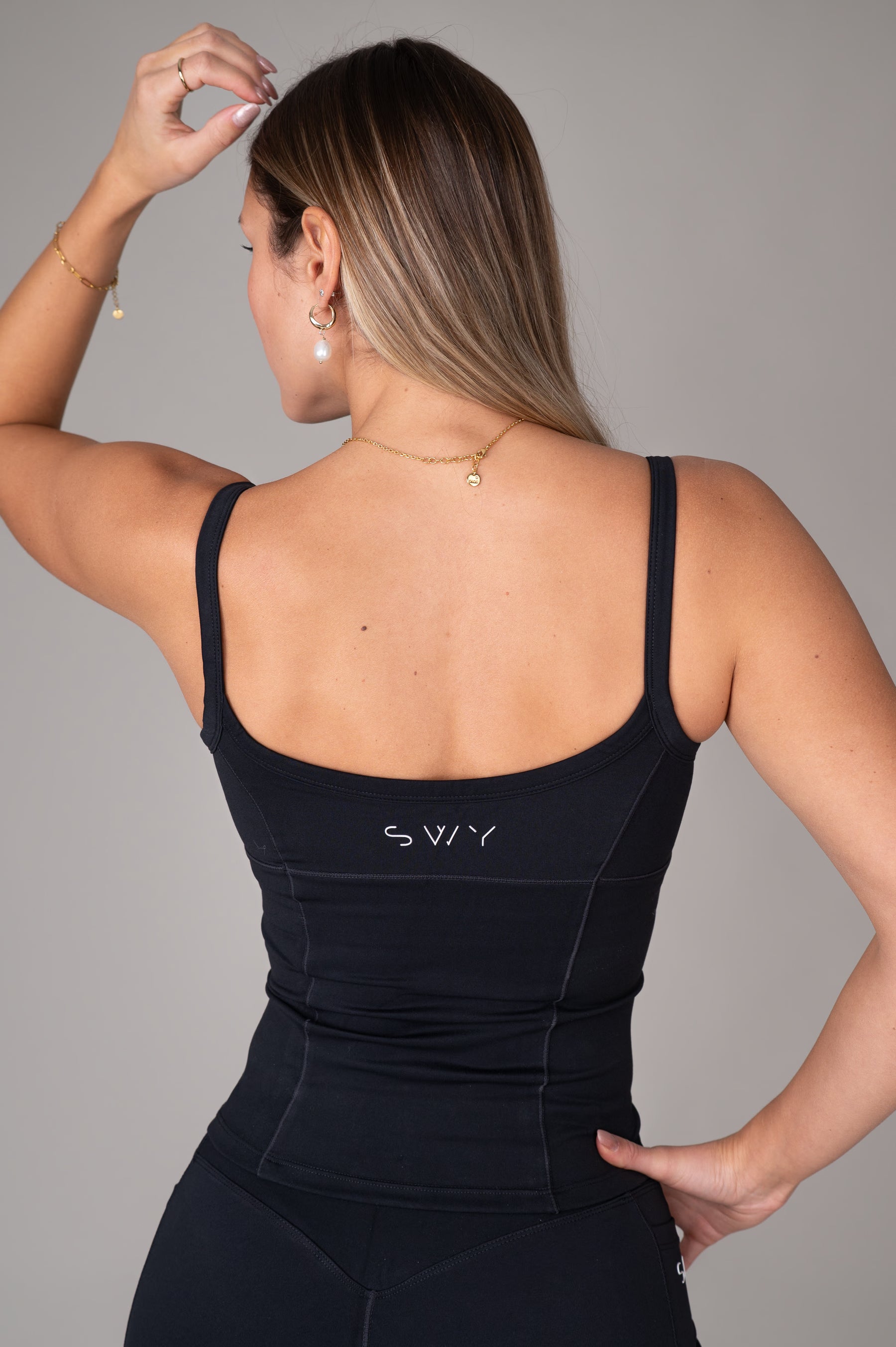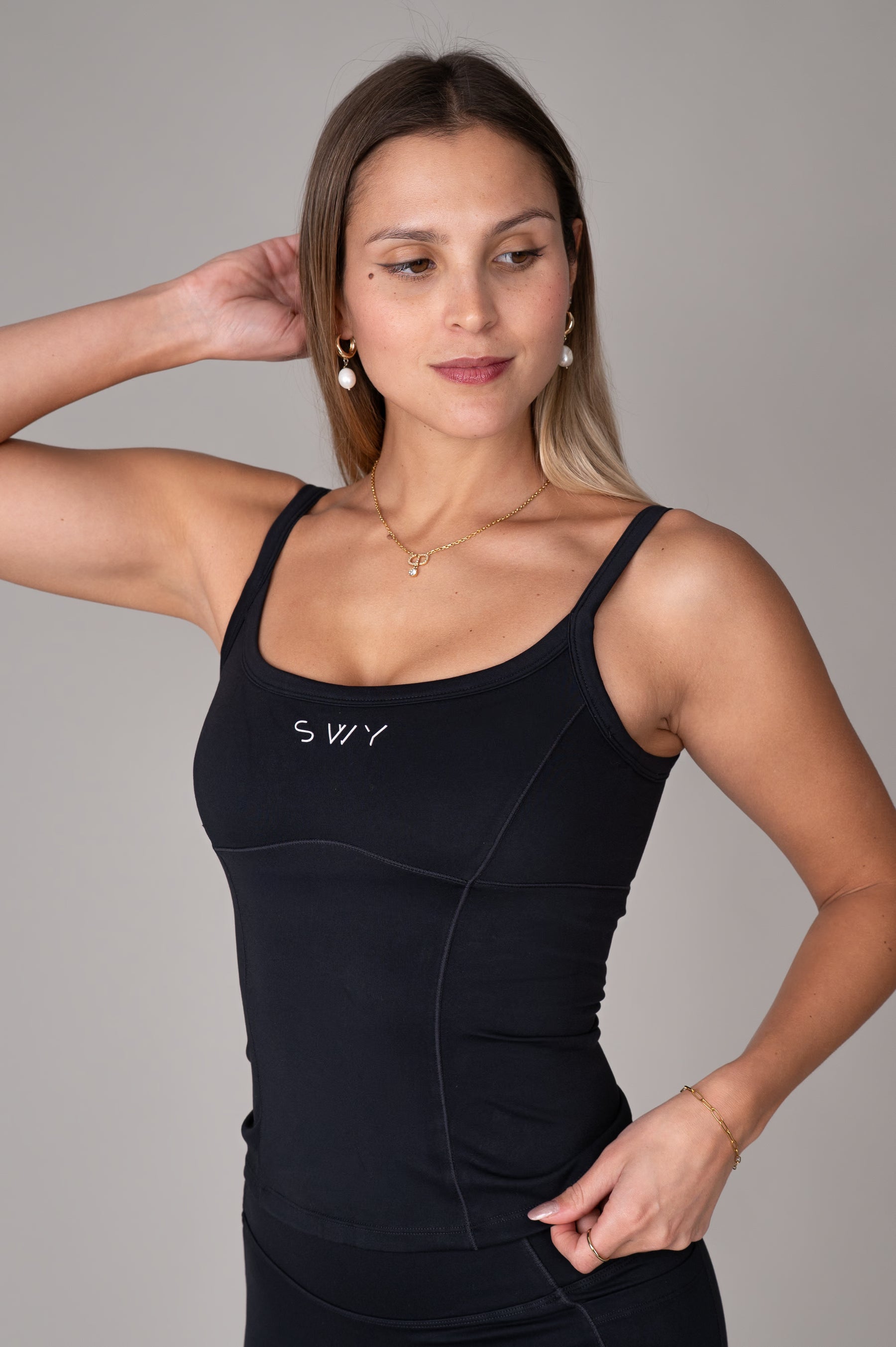 Extended top koji se može nositi kao majica, s uklonjivim umetcima i prugastim detaljima za bolji oblik.