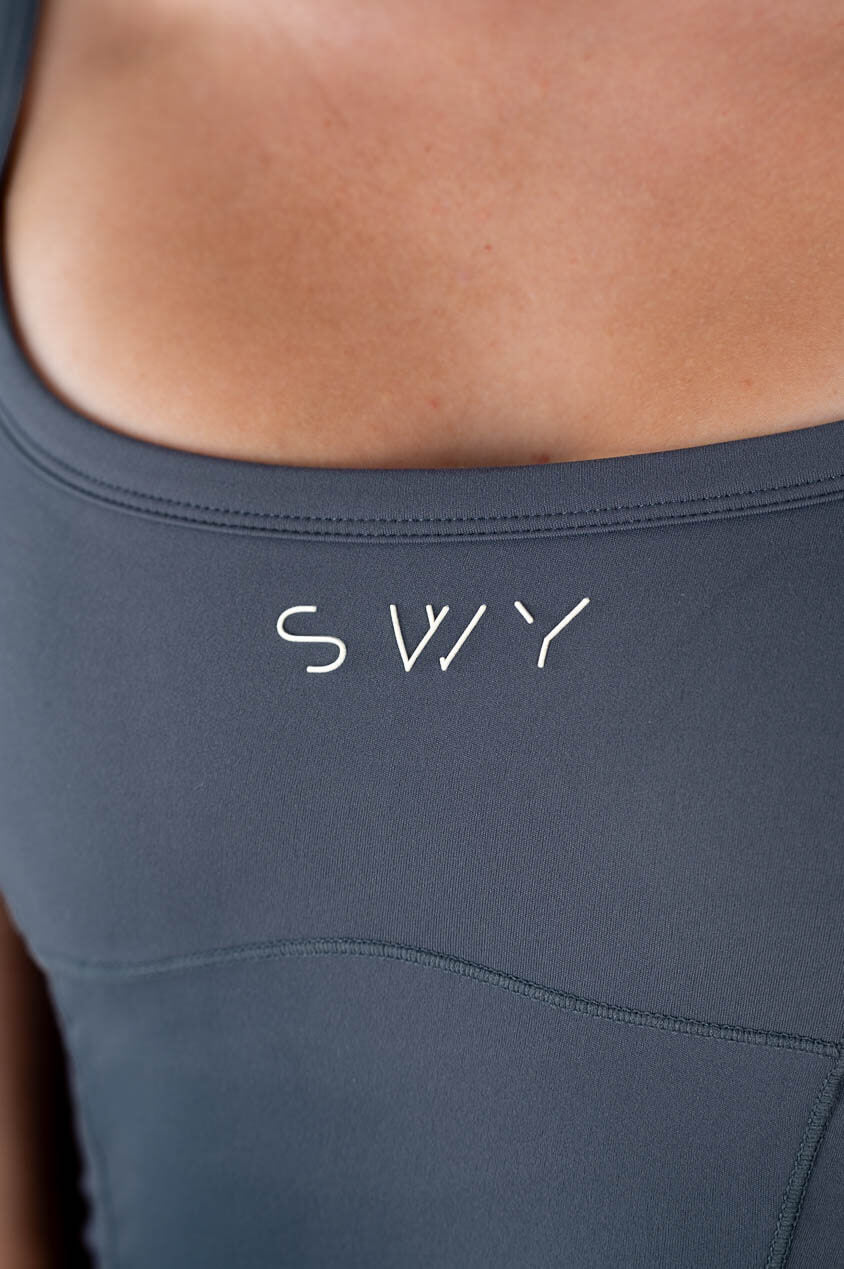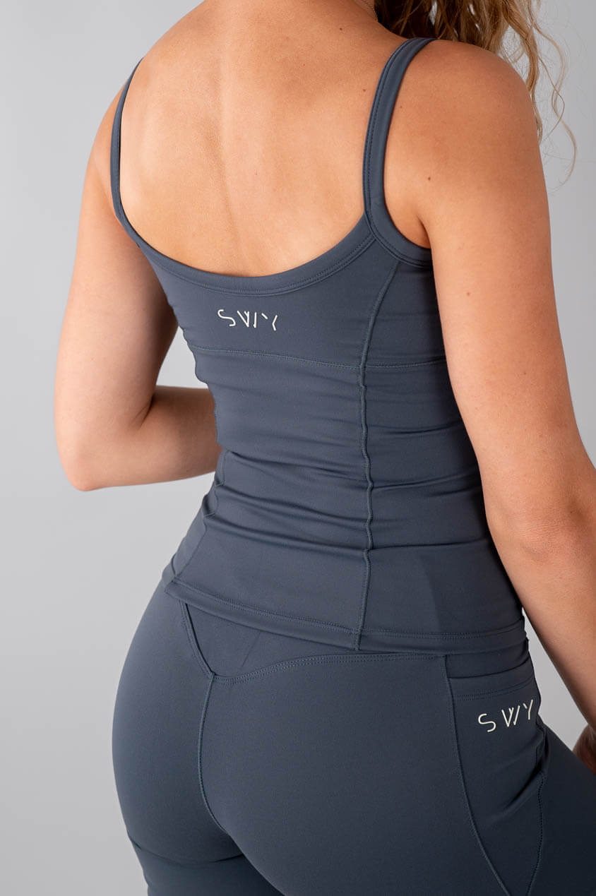 Top allungato che può essere indossato come una T-shirt, con coppe rimovibili e dettagli a righe per una migliore forma.